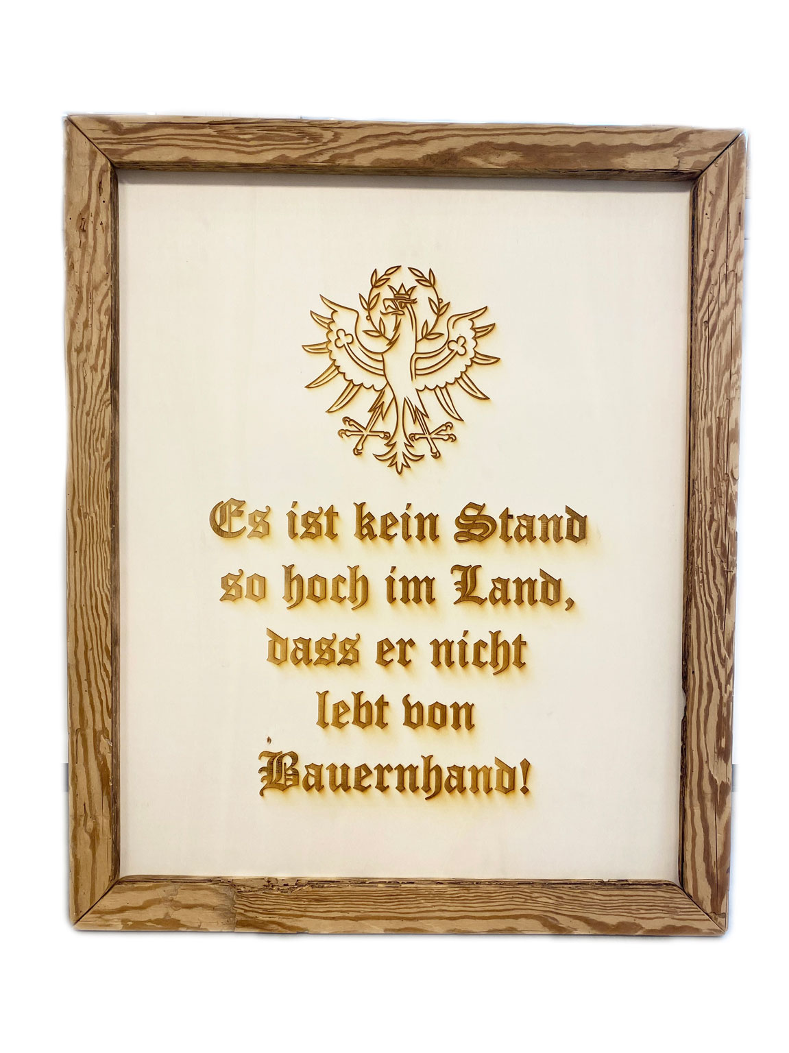 Dieses hochwertige Holzbild besticht durch seinen massiven Altholzrahmen und die präzise Lasergravur von Text und Logos. Jedes Stück ist ein Unikat – natürlich, rustikal und mit viel Liebe zum Detail gefertigt.