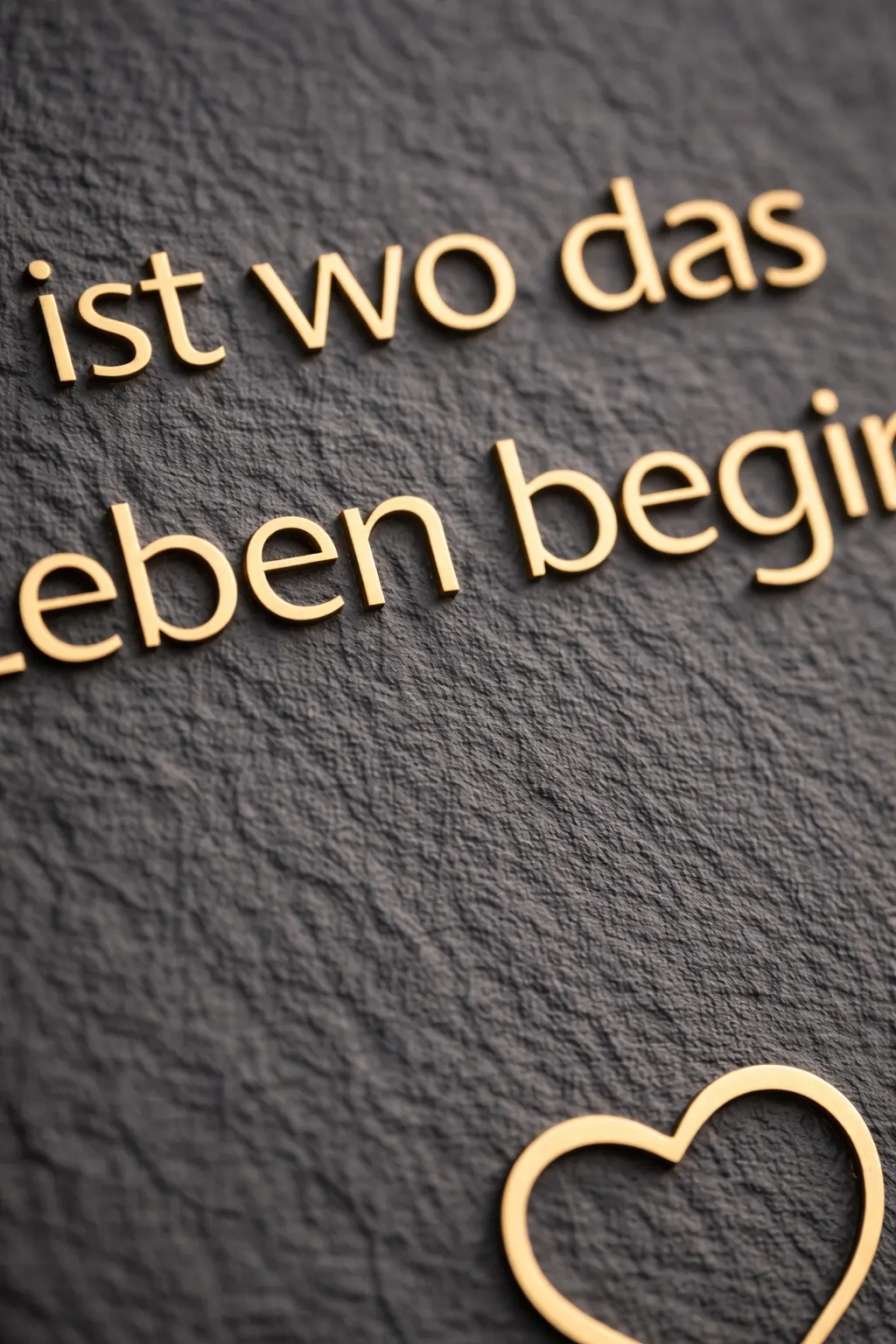 Der Holzspruch wird von Hand gefertigt und präzise mit dem Laser geschnitten, wodurch jedes Stück zu einem Unikat wird.