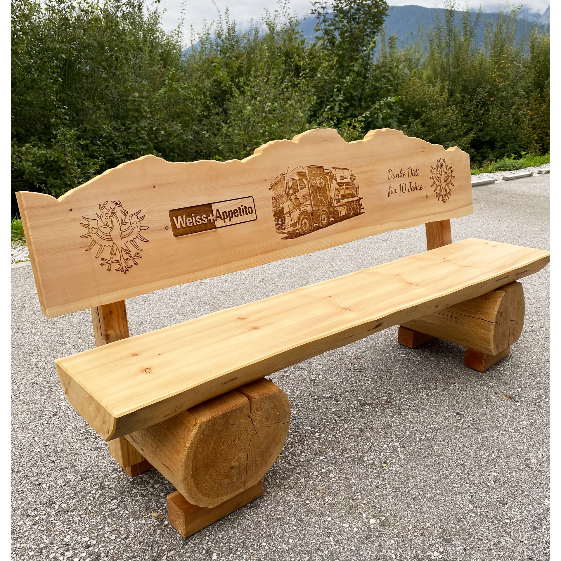 Verleihen Sie Ihrer Zirbenbank eine persönliche Note – mit Ihrem Wunschtext, Namen, Spruch oder Logo. So wird jede Bank zu einem ganz besonderen Einzelstück – ideal auch als Geschenk zur Hochzeit, zum Jubiläum oder zum Einzug.
